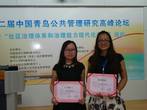公司教师金晓蕊、甘月文及MPA研究生原妍如应邀参加了会议。金晓蕊、甘月文提交的论文《我国城市社区治理主体和谐共生关系探讨》、原妍如提交的论文《政府购买公共服务:社区建设发展的有效途径》均获会议颁发的优秀论文奖。在互动交流环节,公司MPA研究生原妍如的发言受到会议点评专家的高度赞许。
